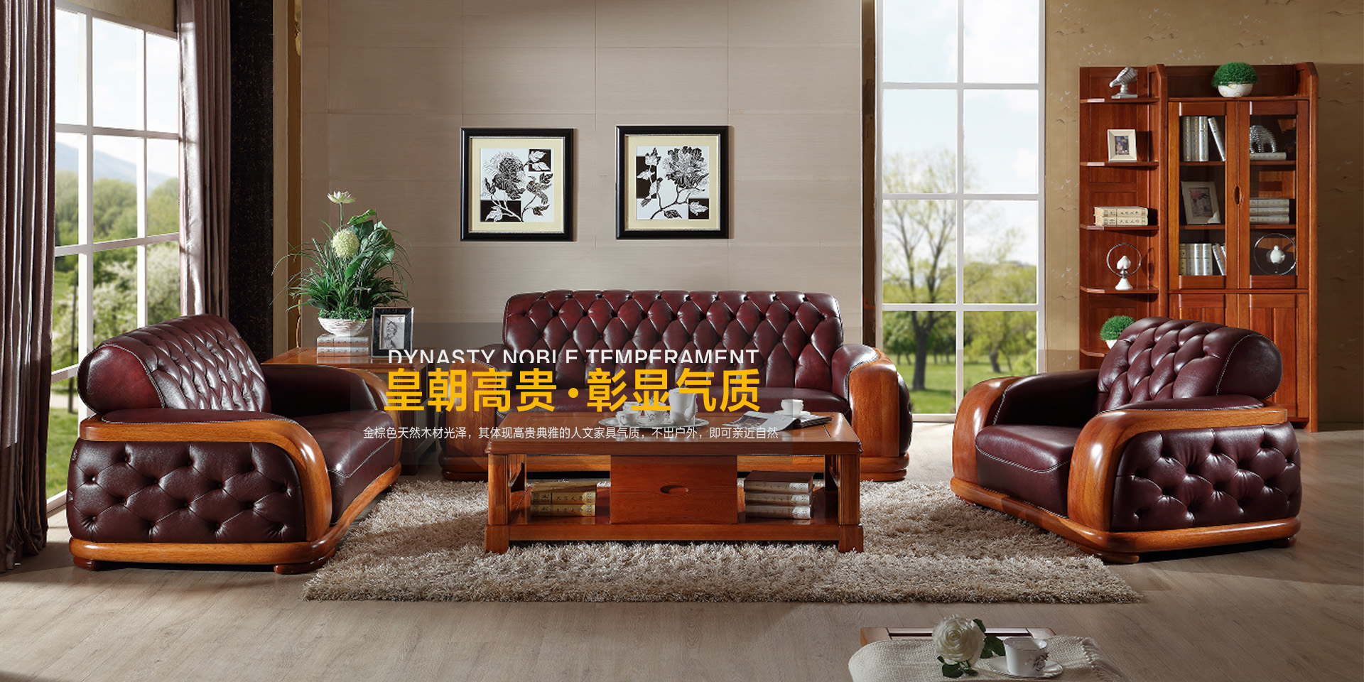 Y9615轉(zhuǎn)角沙發(fā)+W9607L長茶幾+N8601兩門書柜+邊柜